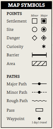 Jede Art von Karte (Region, Siedlung, Lokalität) hat verschiedene Kosten. Für gewöhnlich kostet ein Minor Detail (Punkt oder Pfad) 1 Token und ein Major Detail 2 Tokens. Pfade werden genutzt um Punkte zu verbinden oder in unbekanntes Territorium vorzustoßen.